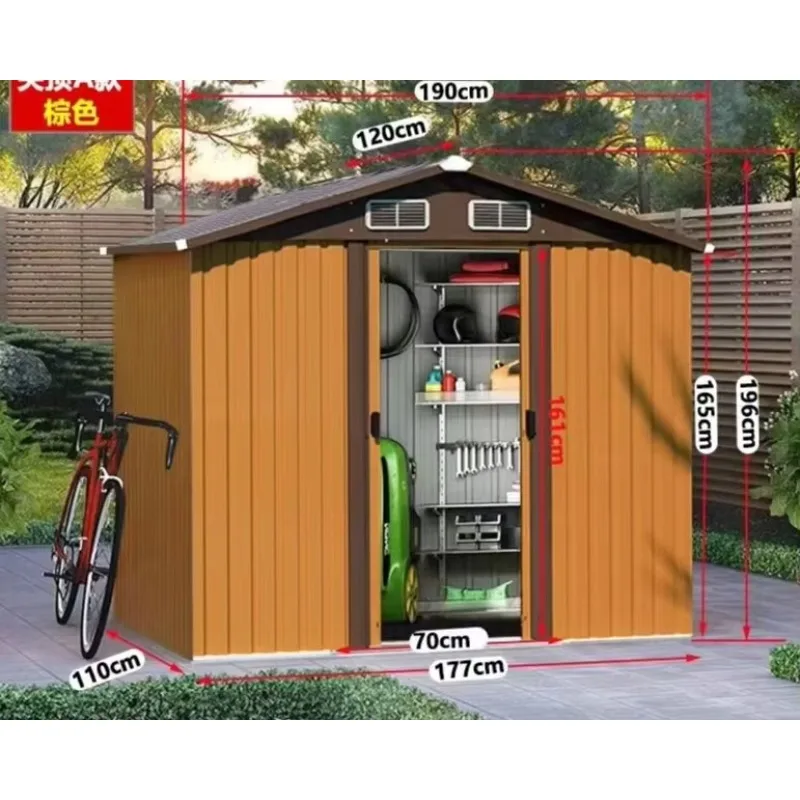 Casetta da Giardino in Metallo per Esterni con Telaio in Acciaio Impermeabile, Facile Montaggio, Unità di Stoccaggio Tipo Naturale per Ripostiglio Attrezzi, Legno Trattato a Pressione