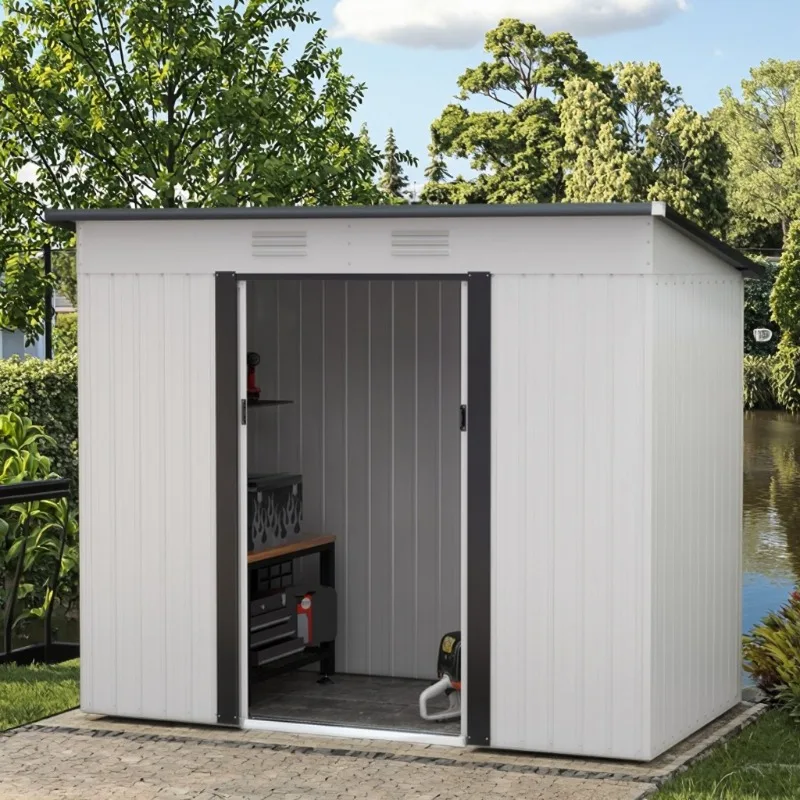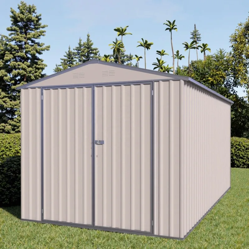 Capanno da Giardino 10x8 FT Grigio per Attrezzi, Impermeabile, da Esterno, Facile da Montare, con Telaio in Acciaio Zincato Verniciato a Polvere - Vendita Calda