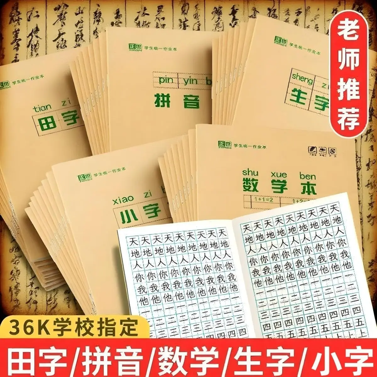 10 quaderni con caratteri cinesi per imparare il cinese, esercizi di Hanzi per la scuola, quaderno per esercizi di Pinyin Tian Zige, articoli di cancelleria cinese