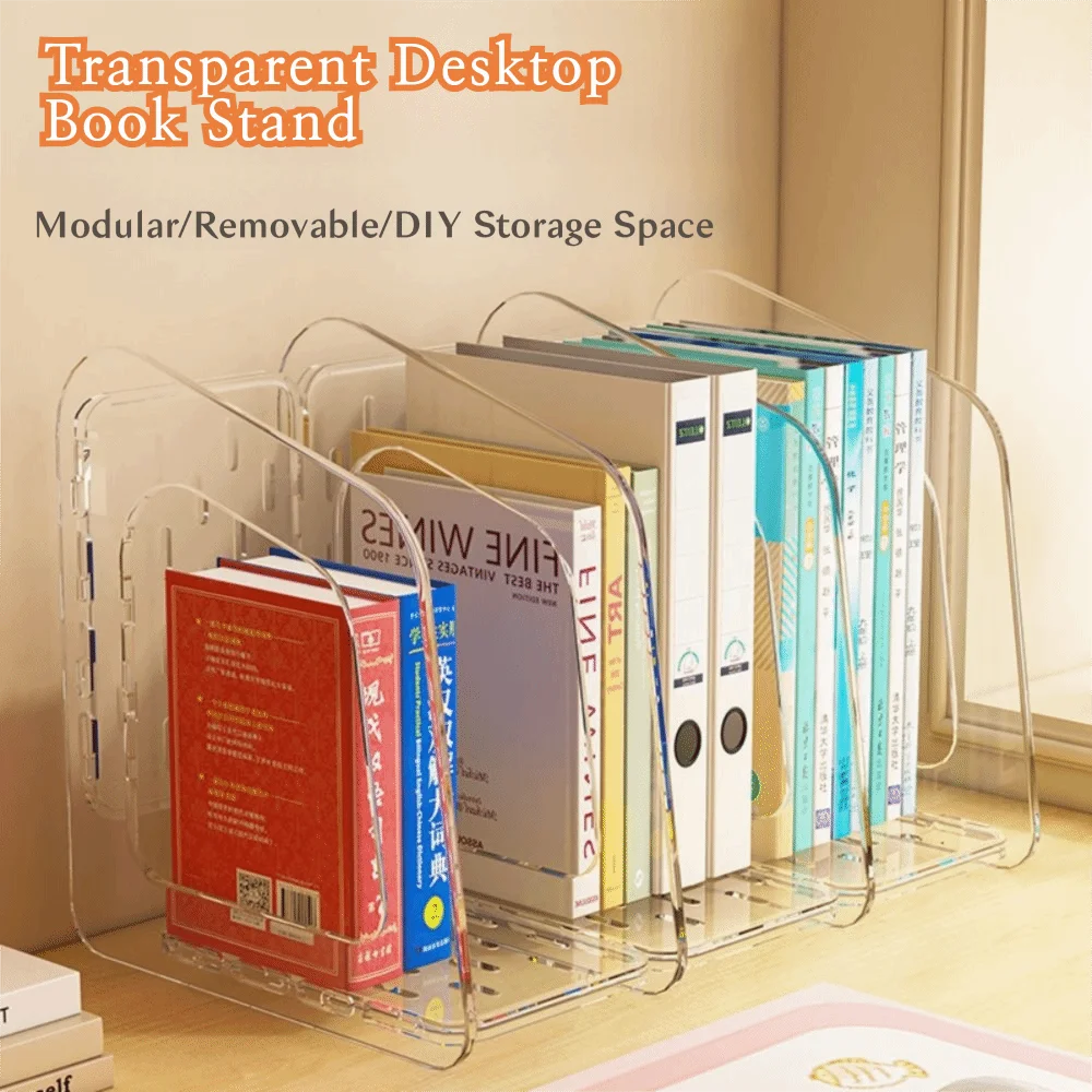 Supporto per libri trasparente in acrilico Scaffale per cancelleria portatile a 3 sezioni Scatola per archiviazione Portariviste Organizzazione documenti