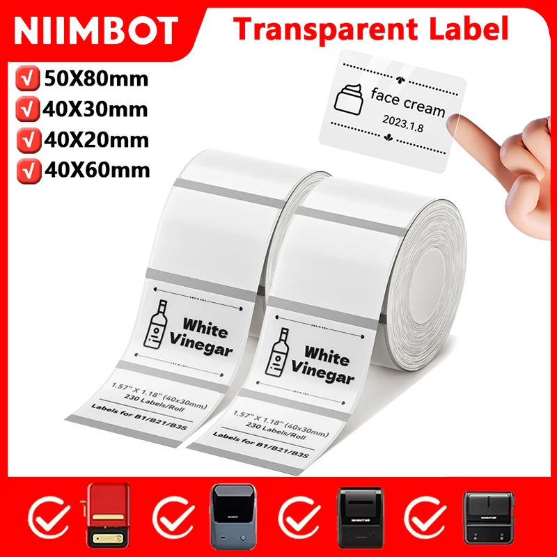 Niimbot Etichetta Termica Trasparente/Bianca Adesivo Autoadesivo Carta UV Impermeabile Per B1 B21 Mini Stampante Termica Portatile Tag