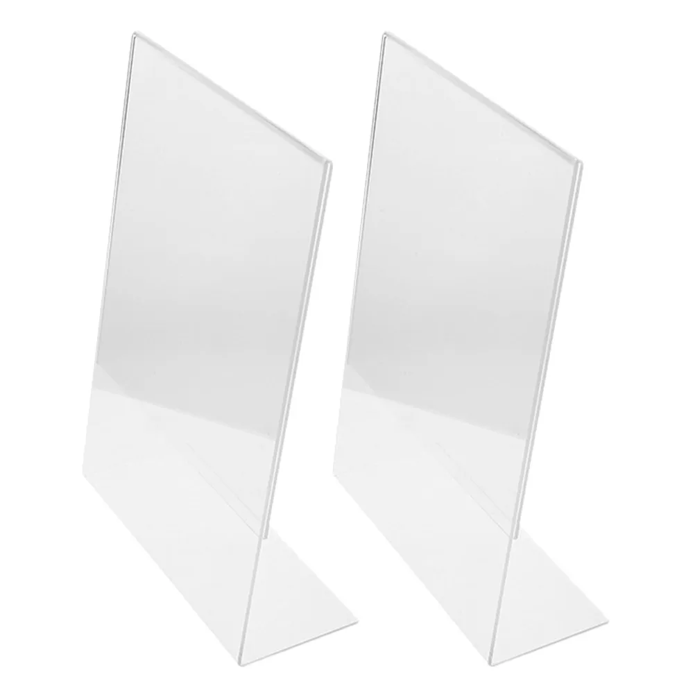 Supporto per poster in acrilico da 2 pezzi, porta-insegne a forma di L, cornice trasparente per menu, numero di tavolo, display da tavolo per ufficio, aula, scrivania