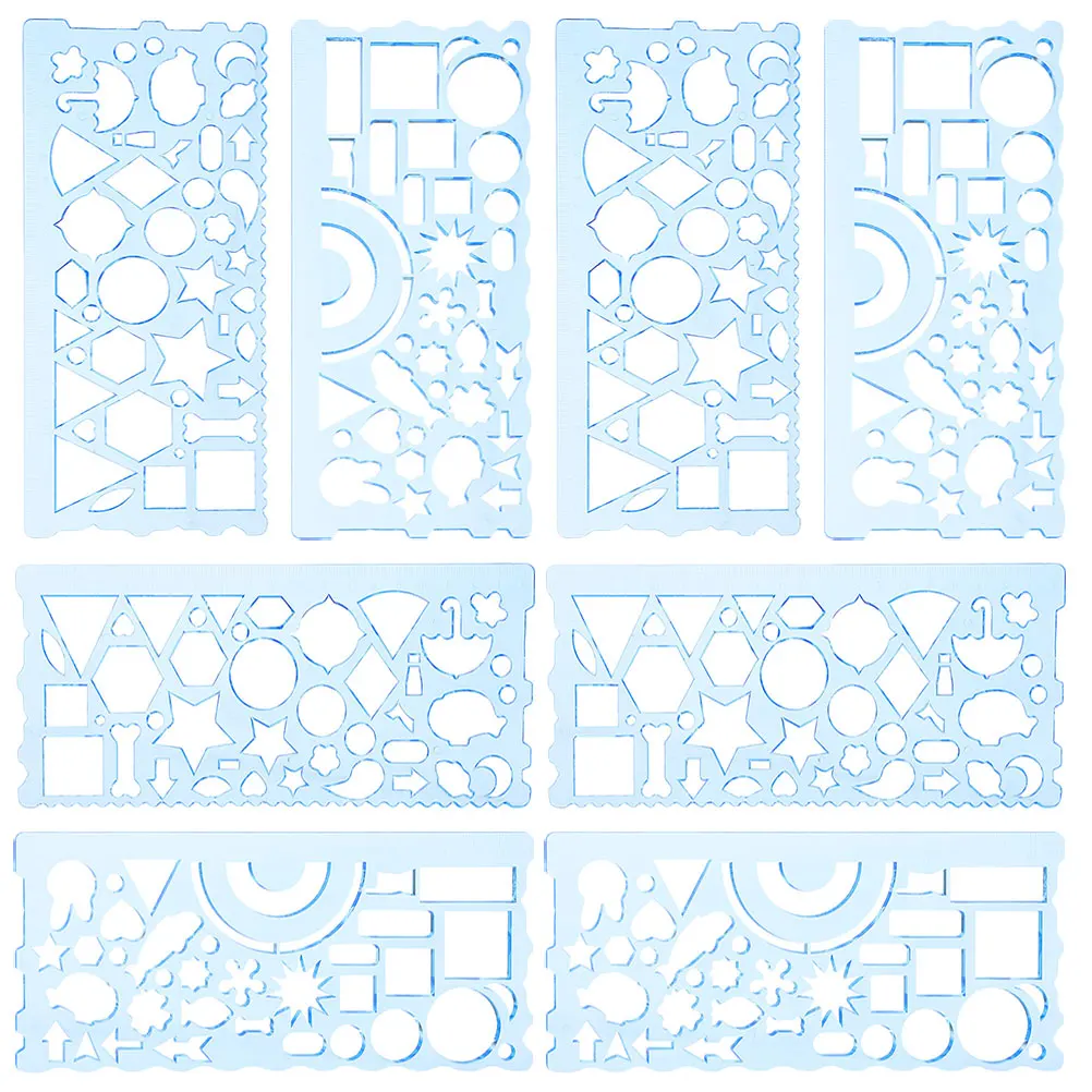 8 Pezzi di Modelli Geometrici per Disegno, Stencil in Plastica con Righello di Misurazione per Studenti di Ingegneria e Architettura