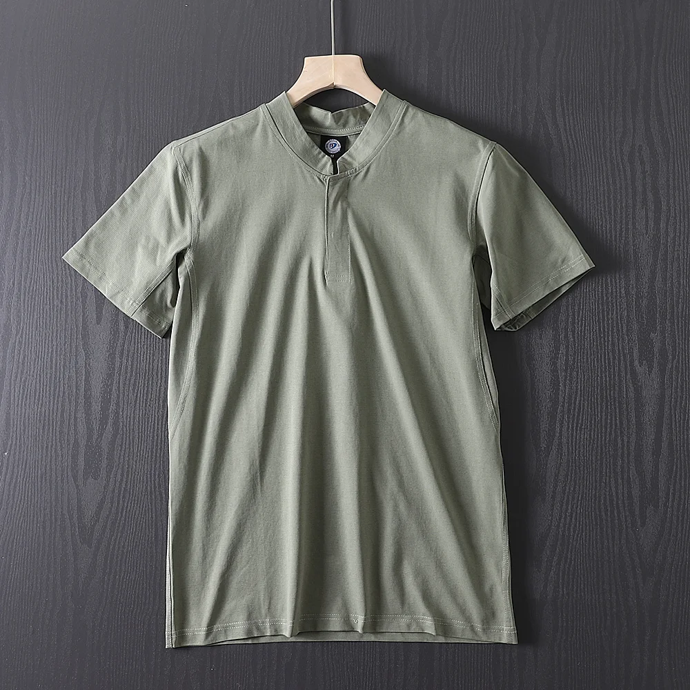 T-shirt a maniche corte casual elastica da uomo estiva a mezza manica con colletto Henry, sport all'aria aperta, corsa, equitazione