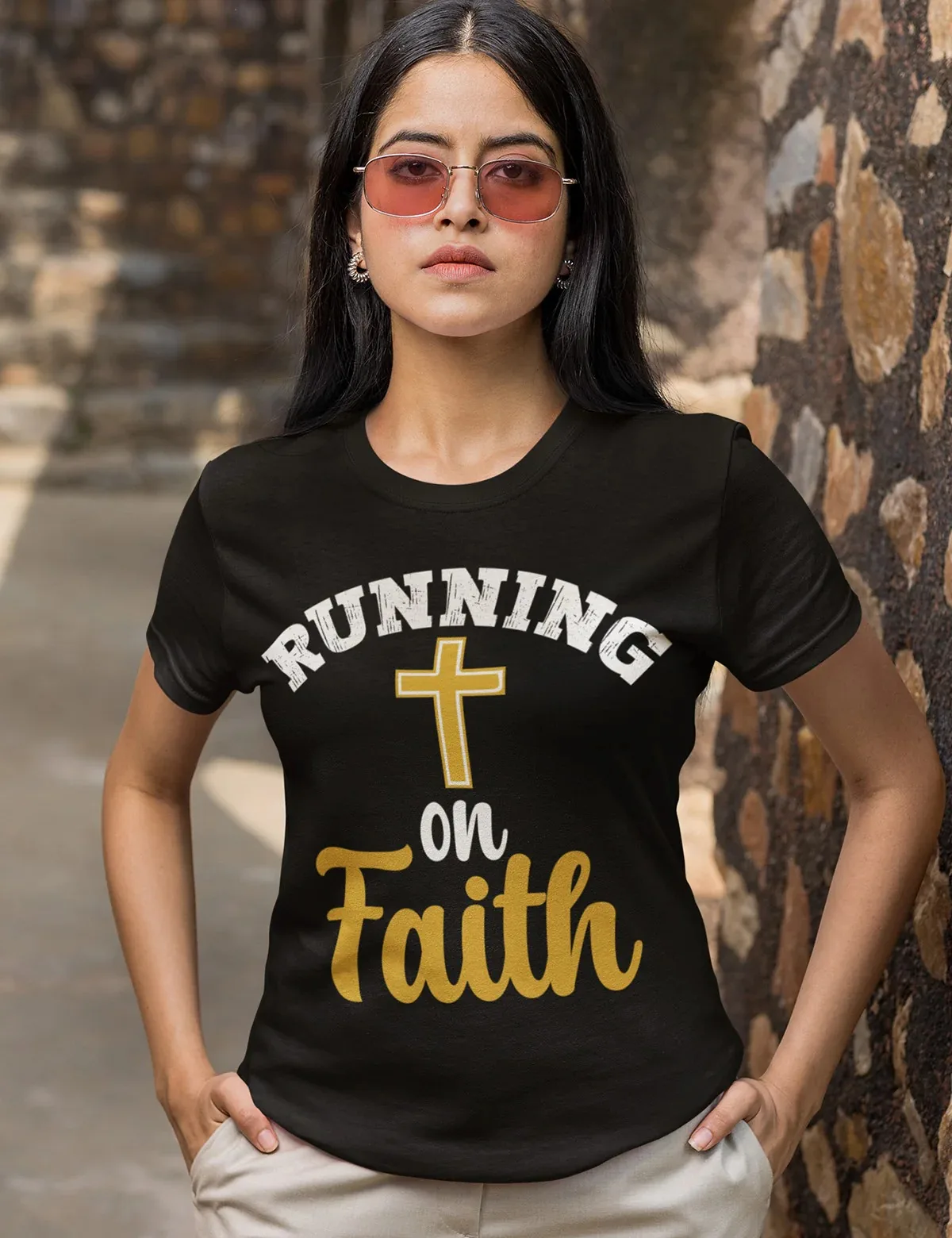 Running on Faith Cross T-shirt Uomo Donna Manica corta T-shirt in cotone Y2k T-shirt Camicia estiva Abbigliamento donna Top oversize