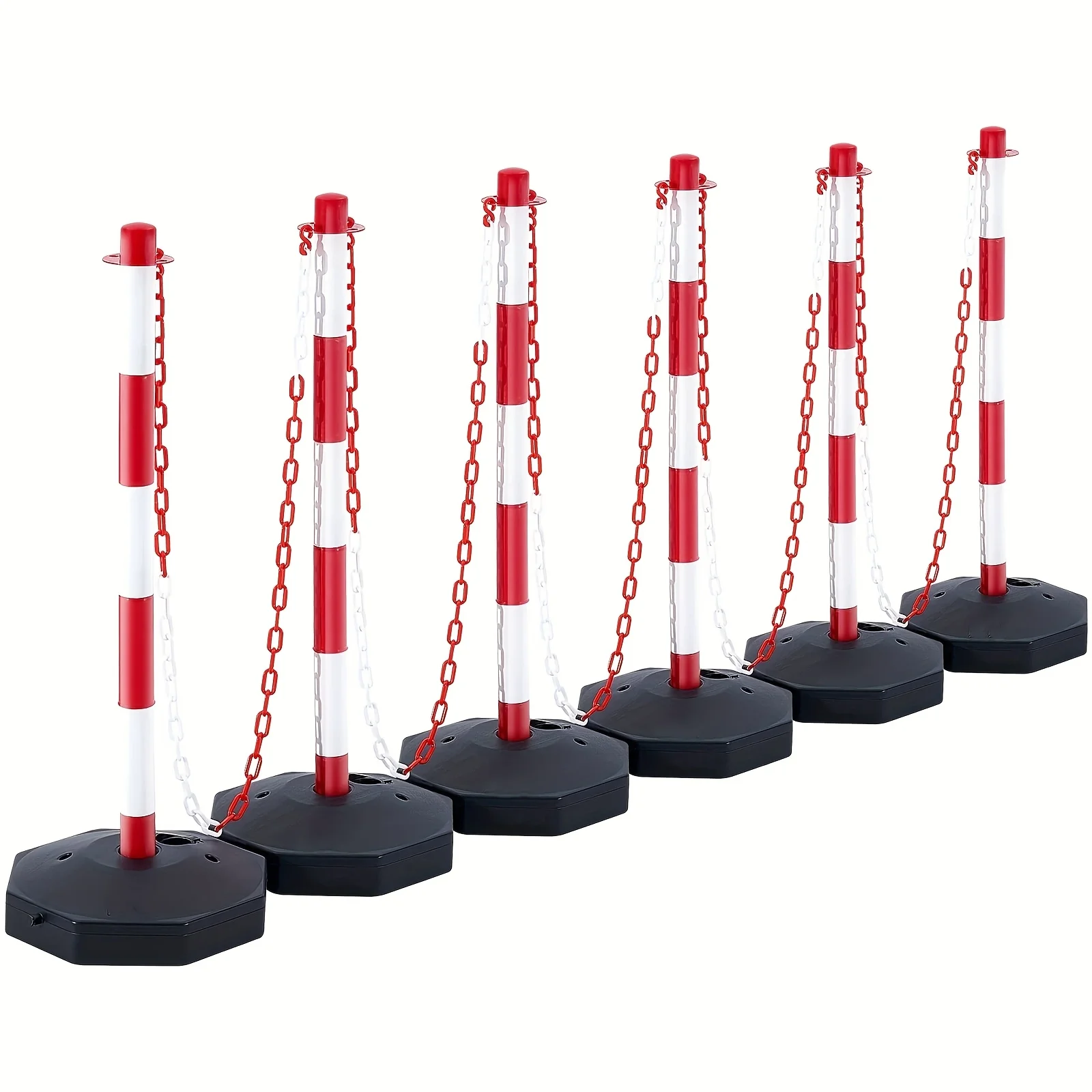 6 Coni di Segnalazione Stradale, Barriere di Sicurezza Rosse e Bianche, con Basi Ricaricabili, Catena da 2 Metri, per Controllo del Traffico, Avvertimenti, Costruzione di Parcheggi e Segnalazione Stradale