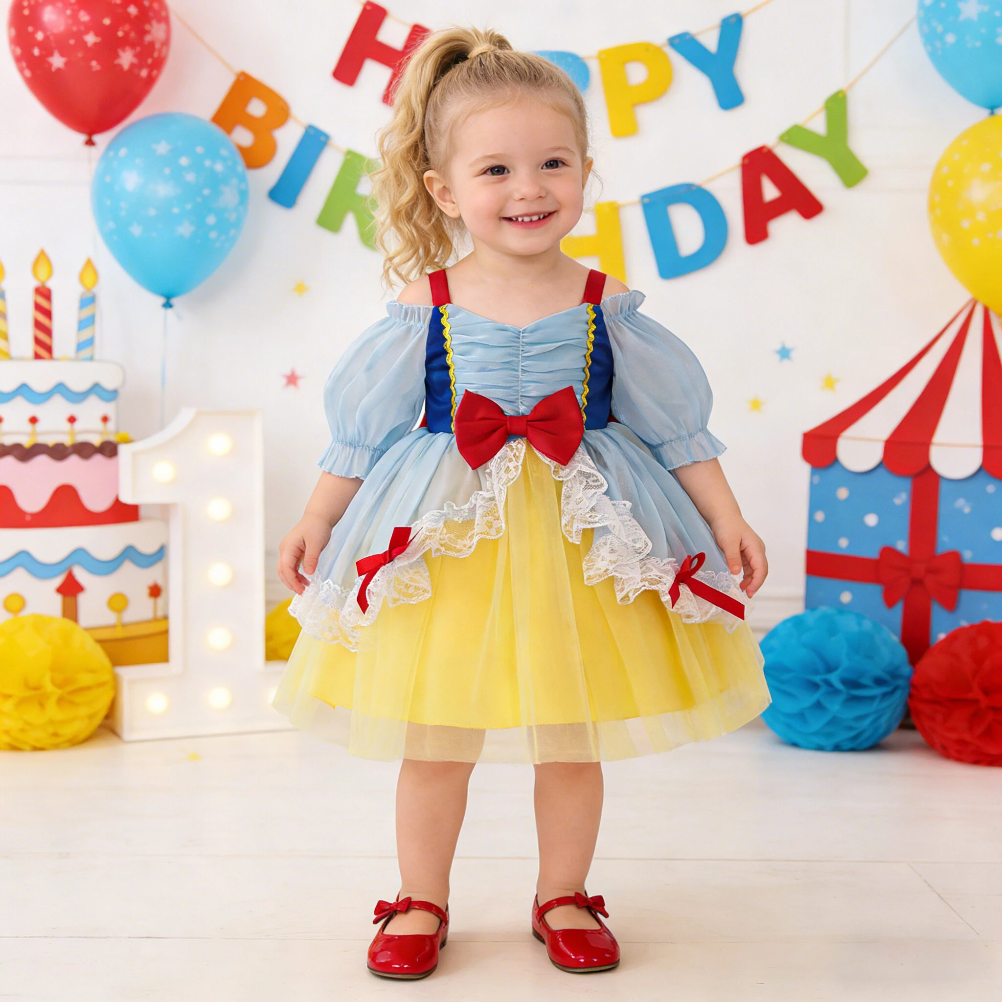 Vestito da Festa Biancaneve per Bambina, Nuovo Abito in Velluto con Maniche a Palloncino, Costume con Gonna Vaporosa per Neonati e Bambini