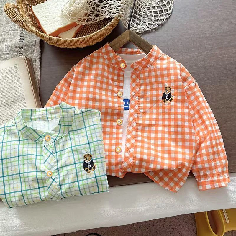 Elegante camicia a maniche lunghe per ragazzi e ragazze Capispalla moda primaverile Abbigliamento per bambini Sistema in legno Top per bambini carini