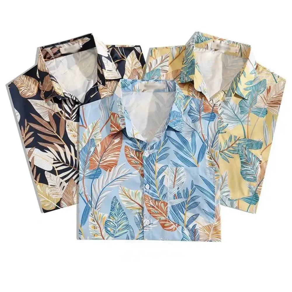 T-shirt stile hawaiano retrò manica corta stampa floreale camicetta floreale unisex camicia con stampa da uomo con scollo a V colorato festa all'aperto