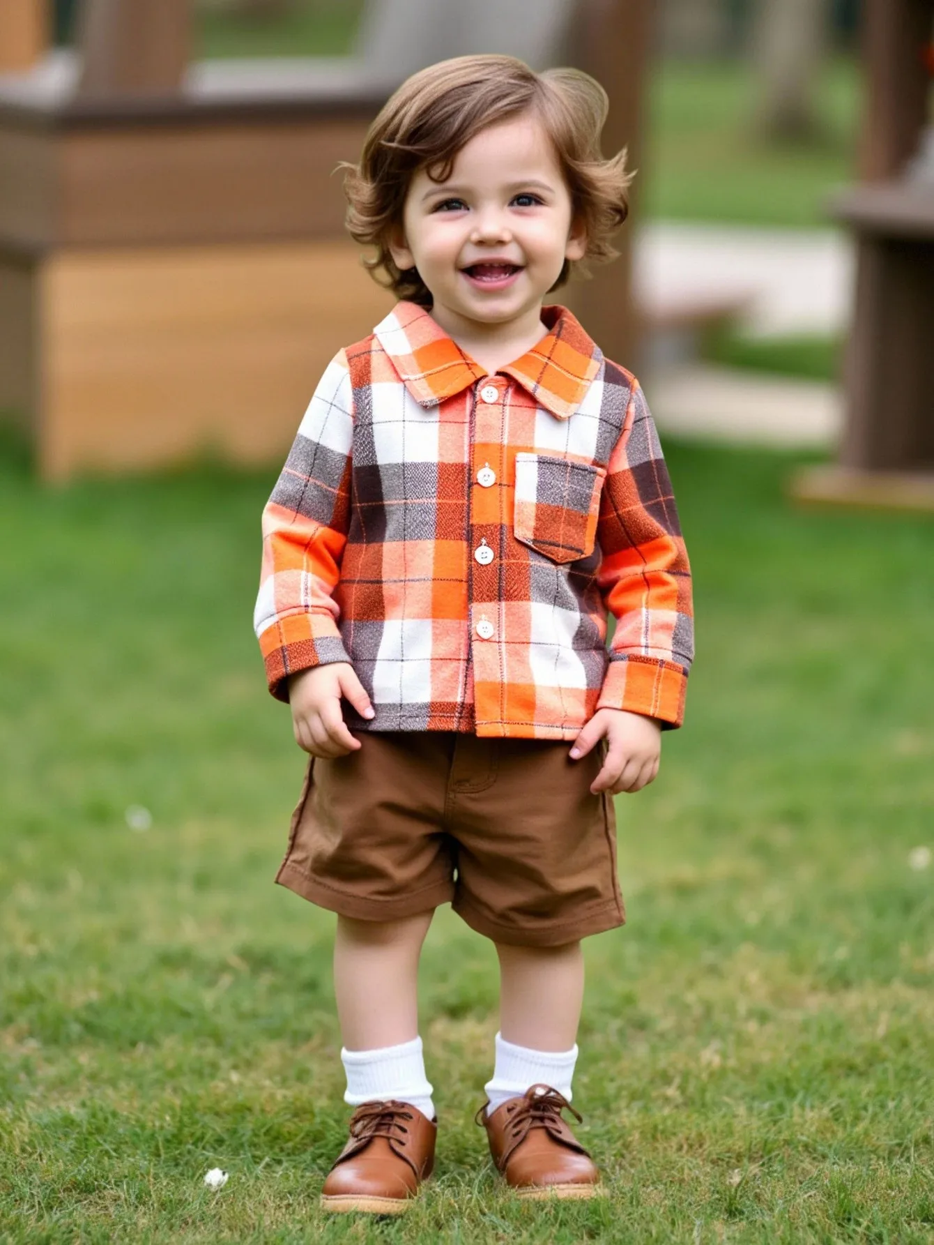 Pezzo unico di camicia a maniche lunghe con bottoni aperti sul davanti e colletto scozzese casual alla moda per neonato (plaid casuale) autunno
