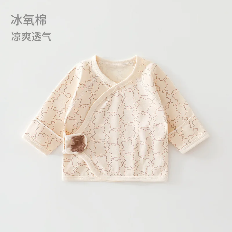 Camicia a Mezza Schiena per Neonati, Abbigliamento Estivo in Puro Cotone Senza Cuciture, Top Kimono per Neonati, Completo Jacquard per il Primo Mese