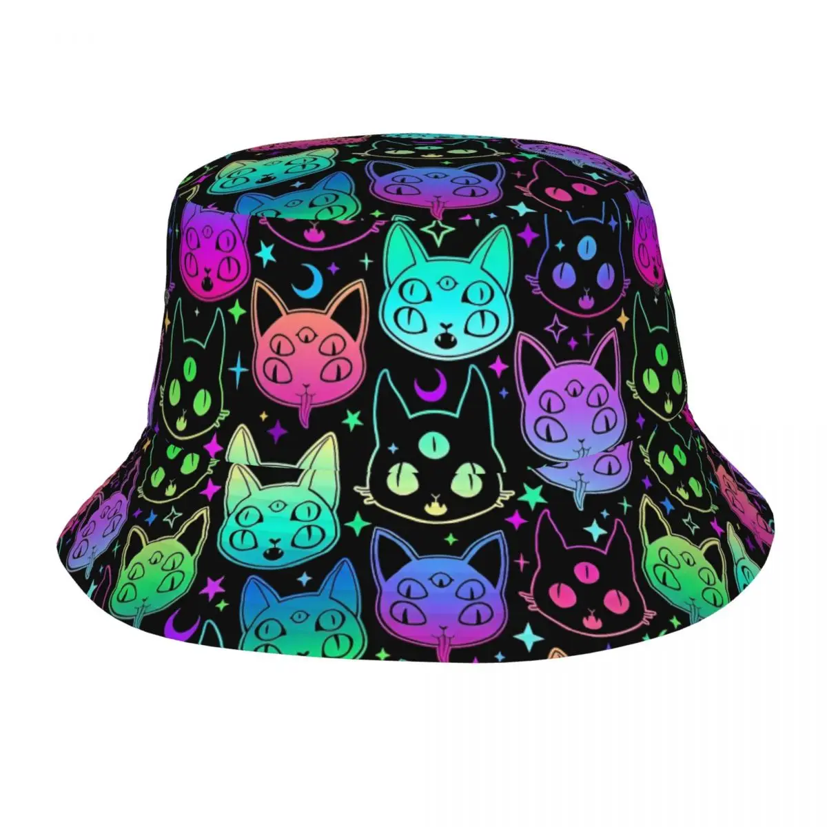 Cappello da pescatore per gatti al neon psichedelico da strada Donna Uomo Sport all'aria aperta Berretto da pesca Summer Beach Vacation Fuga Copricapo Bob Hat