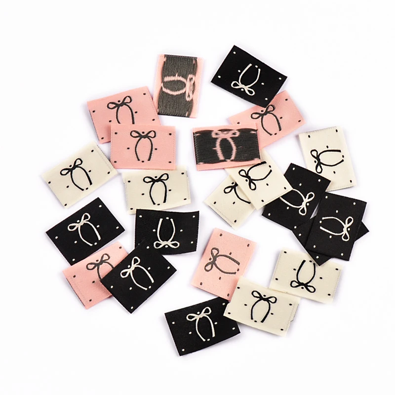 50 pz 28x19mm Mix Colorfull Bow Pattern Etichetta Per FAI DA TE Abbigliamento Artigianale Borsa Accessori Per Cucire Decorativi Senza Gomma cp4176