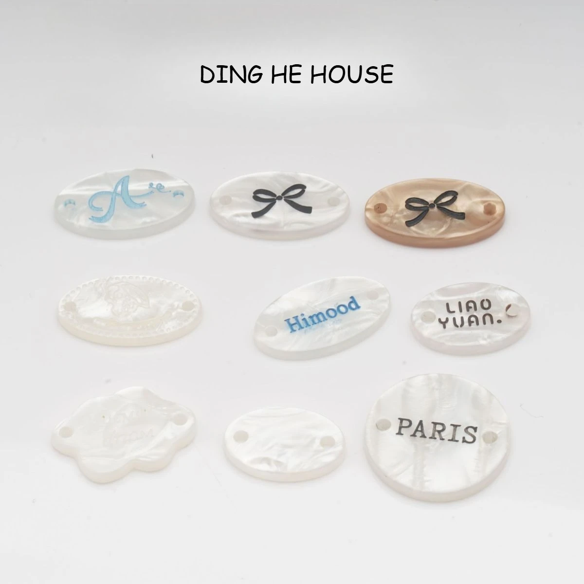 10 pezzi di etichette ellittiche collezione di bottoni cucito fai da te gioielli fatti a mano bottoni decorativi etichetta per camicia maglione con fiocco lettera coreana