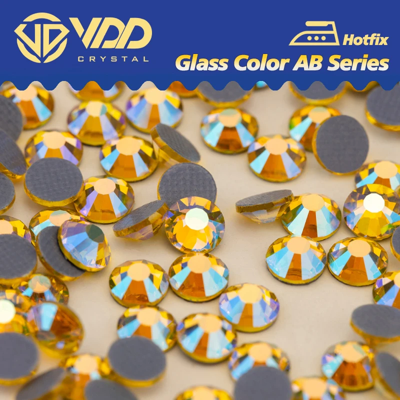 VDD 071 Citrino AB SS6-SS30 Strass in vetro Hotfix di alta qualità Colore cristallo AB Flatback Glitter Strass Pietre Abbigliamento Indumento