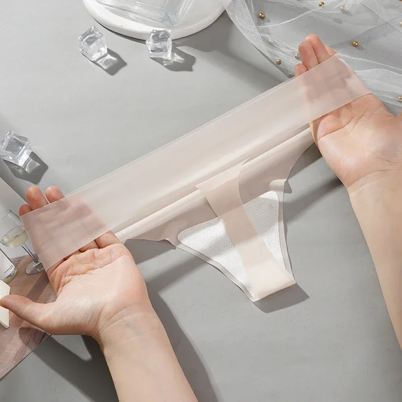 Mutandine perizoma trasparenti da donna 3 pezzi Mutandine estive ad asciugatura rapida tinta unita Mutandine ultrasottili senza cuciture a vita bassa