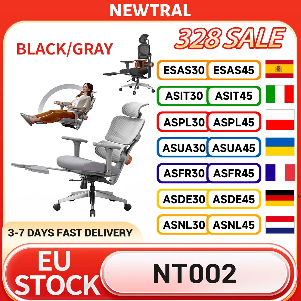 NEWTRAL NT002 Sedia ergonomica Supporto per la parte inferiore della schiena adattivo con poggiapiedi 4 Angolo reclinabile Schienale regolabile Bracciolo Poggiatesta