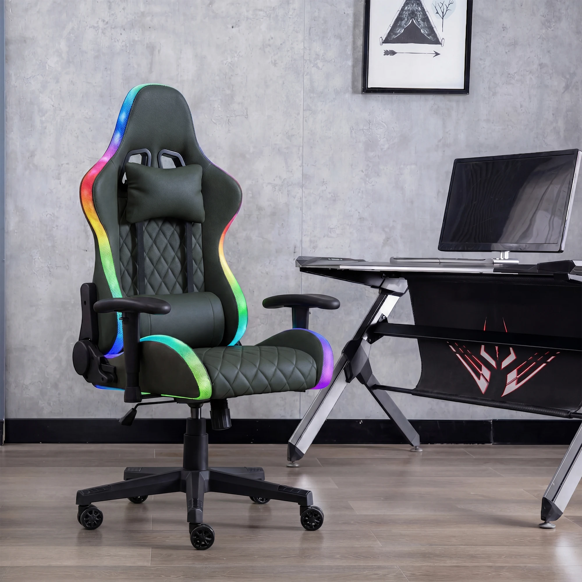 Sedia da ufficio ergonomica con massaggio lombare, illuminazione ambientale LED RGB e schienale reclinabile, per uffici domestici