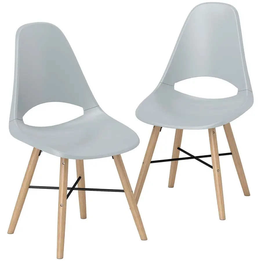 Set di 2 sedie per sala da pranzo, sedie da cucina moderne con schienale dal design ritagliato e gambe in legno di gomma, sedia in plastica per cucina,