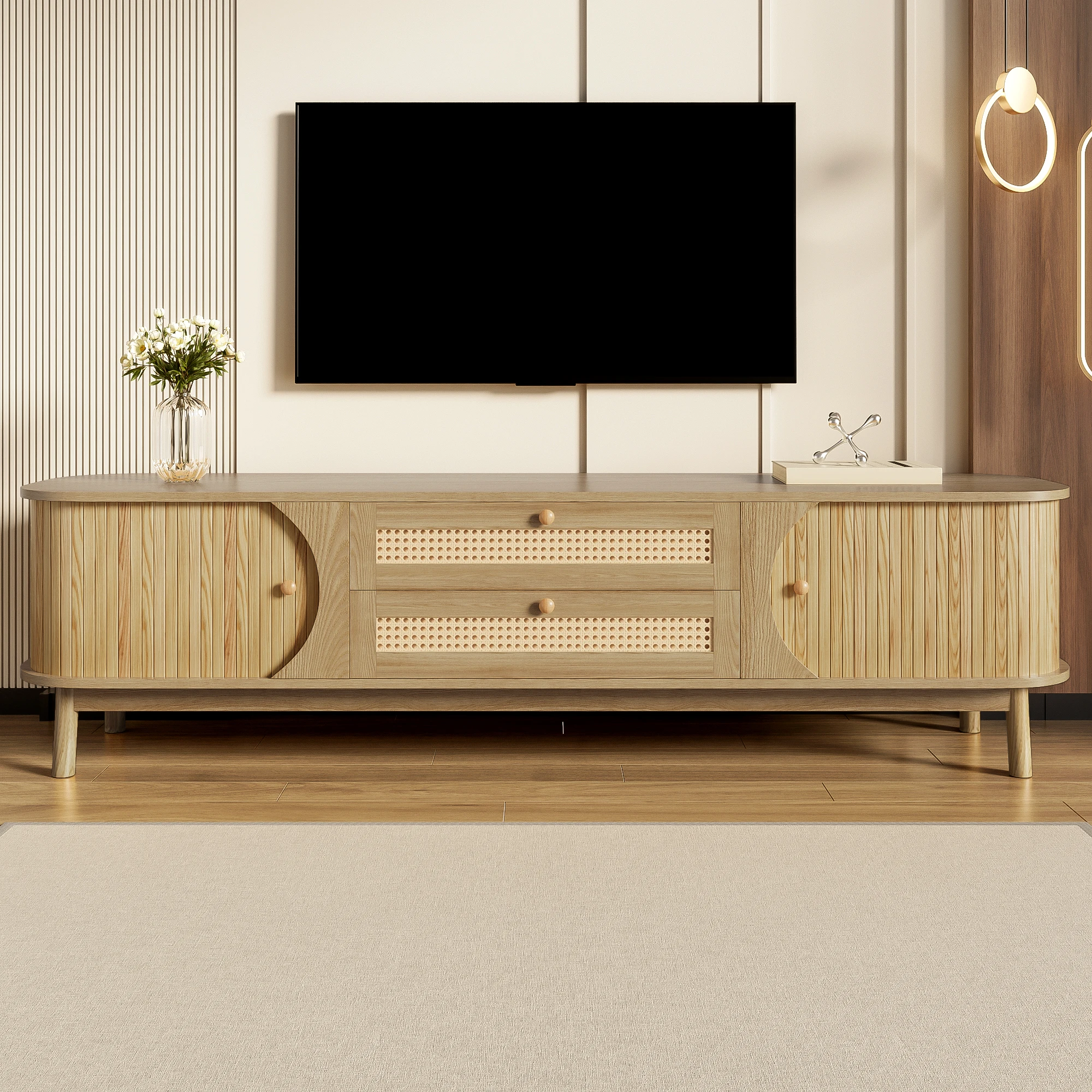 Mobile TV/pannello basso in rattan naturale. Mobile TV in stile country in misto legno con ante e cassetti. Soluzione di archiviazione