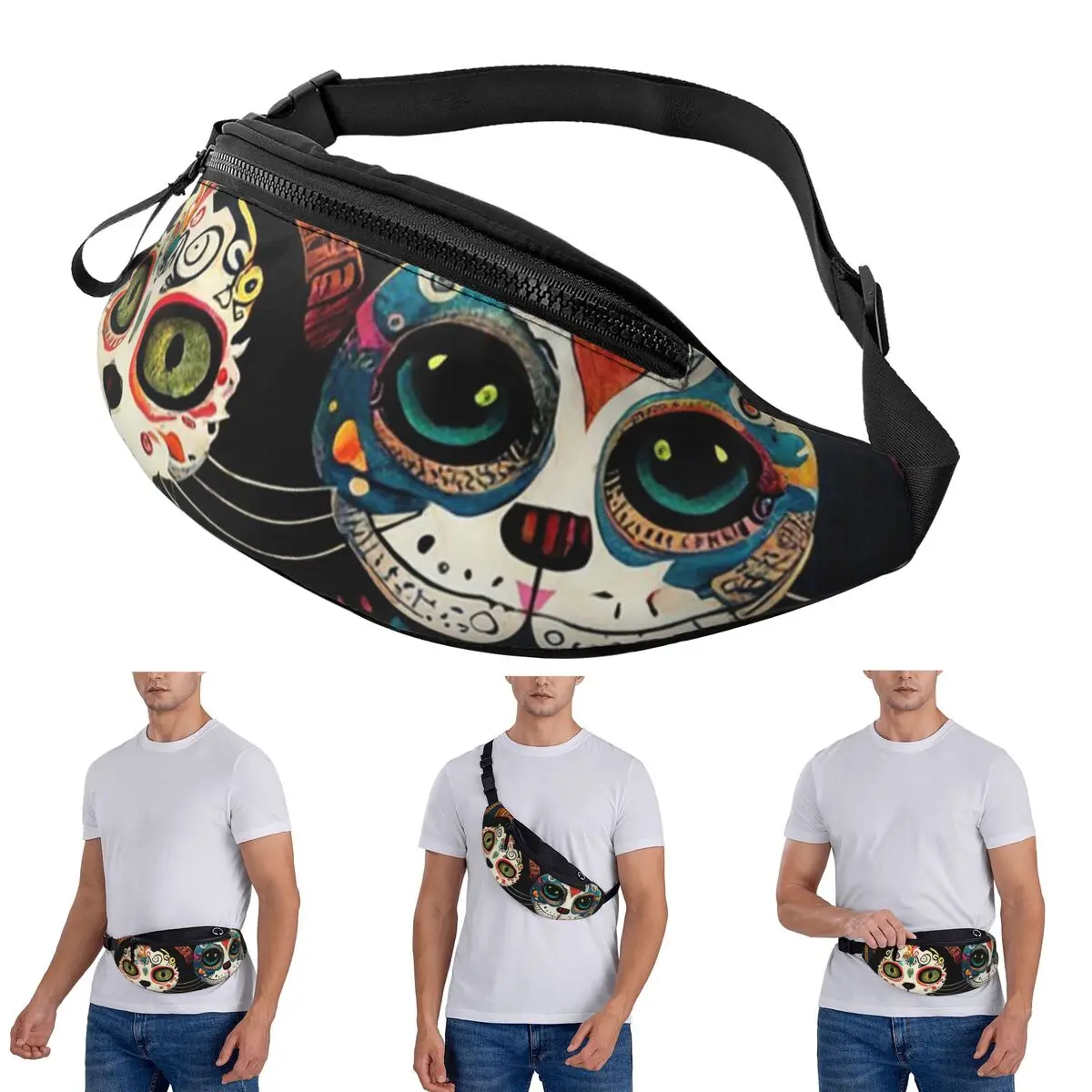 Marsupio a tracolla Giorno dei morti Gattino Gatto Zucchero Teschio Dia De Los Muertos Marsupio da donna Viaggio Corsa Soldi Custodia per telefono