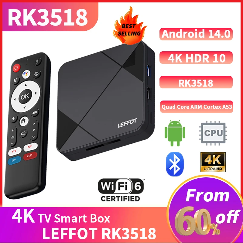 NUOVO LEFFOT RK3518 TV Box Android 14.0 Quad Core A53 Rockchip RK3518 Smart TV Box 4k Wifi6 HDR Google Lettore multimediale vocale