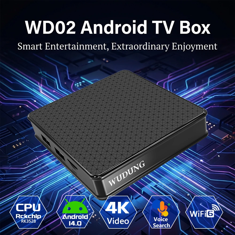 WD02 TV Box AndroidTV Rockchip RK3518 Android14 4K HD 2.4G Wifi 4K HDR Set Top Box Lettore Multimediale per Film e Canali TV