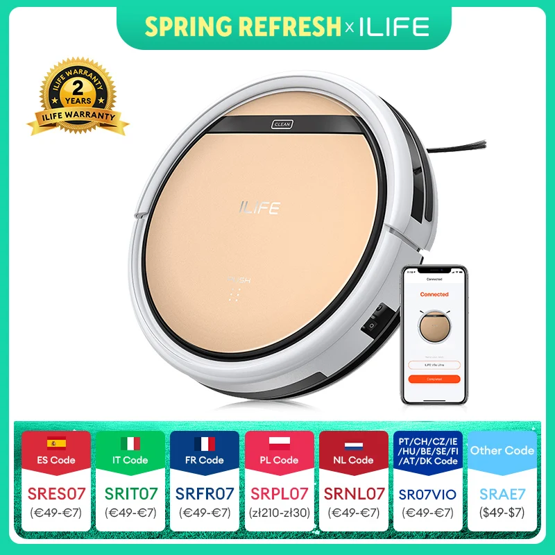 ILIFE V5s Ultra Robot Aspirapolvere e Lavapavimenti, Aspirazione 4000Pa, Controllo tramite App/Telecomando, Creazione Mappe, Programmazione Pulizie