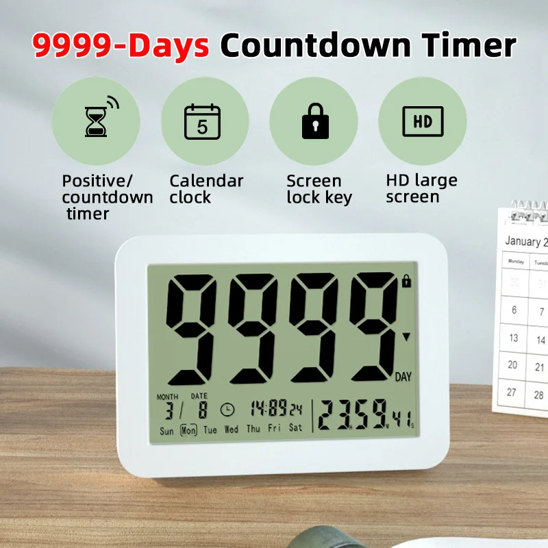 Conto alla rovescia elettronico a grande schermo Temporizzatori digitali Conto alla rovescia da 9999 giorni Orologio per aula Temporizzatore per il conto alla rovescia per la pensione