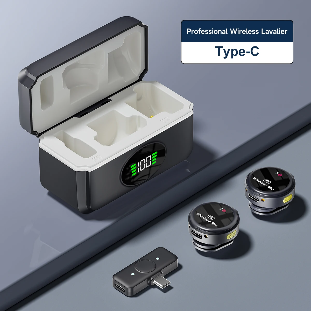Microfono Lavalier Wireless Mini Stereo per Esterni con Custodia di Ricarica per Interviste dal Vivo con Cancellazione del Rumore