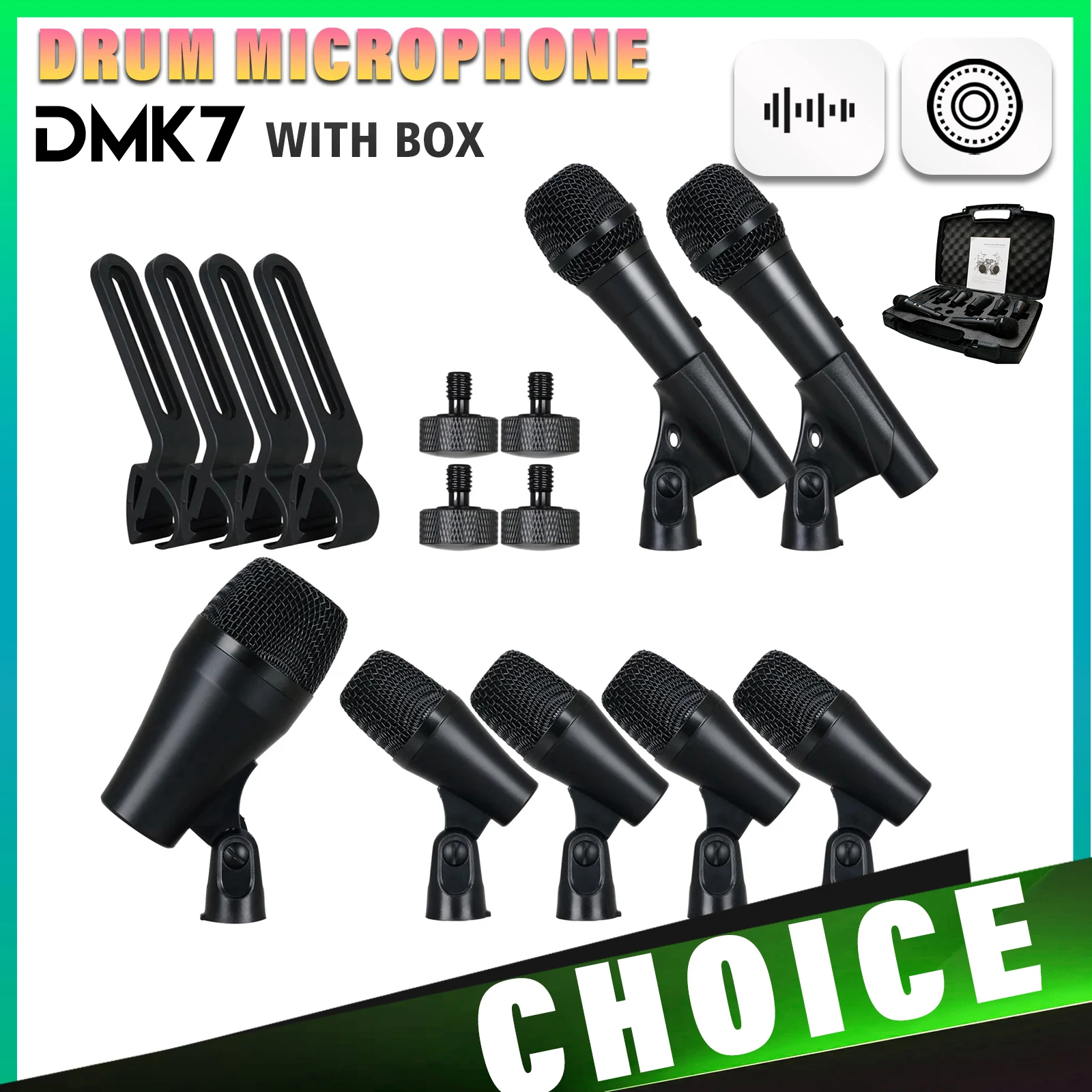 Set di microfoni per kit batteria da 7 pezzi con custodia in plastica per batteria Performance Band Party Use Microfono dinamico