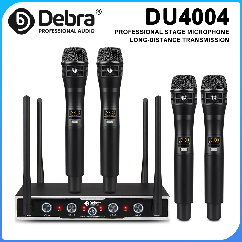 DU4004 Sistema microfonico wireless portatile UHF, UHF 4 canali, distanza 80 m, con lavalier, auricolare, per palcoscenici, conferenze