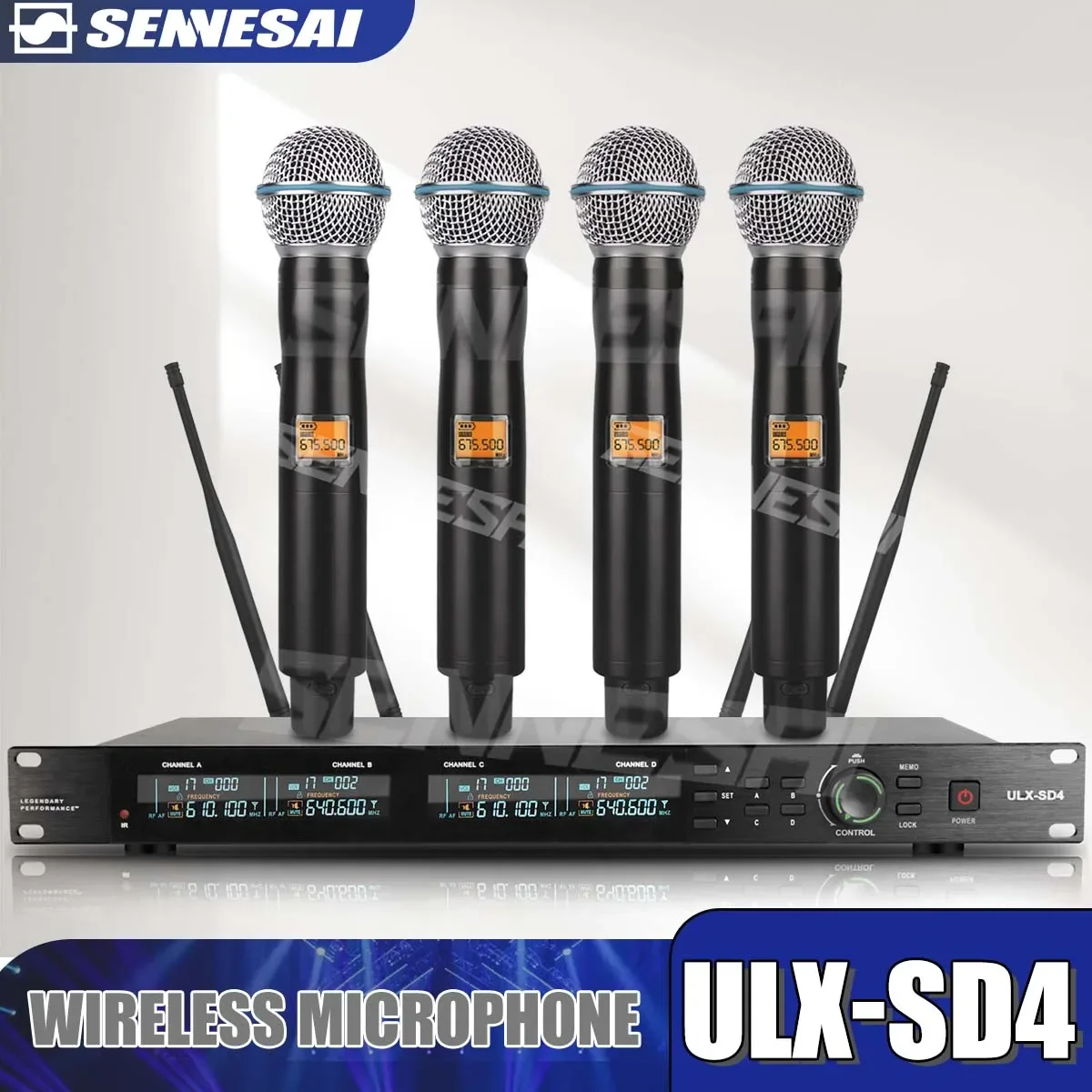 TOP!ULX-SD4 KSM8 Microfono wireless (metallo intero) 4 canali UHF Microfono professionale dinamico palmare per feste Karaoke Chiesa