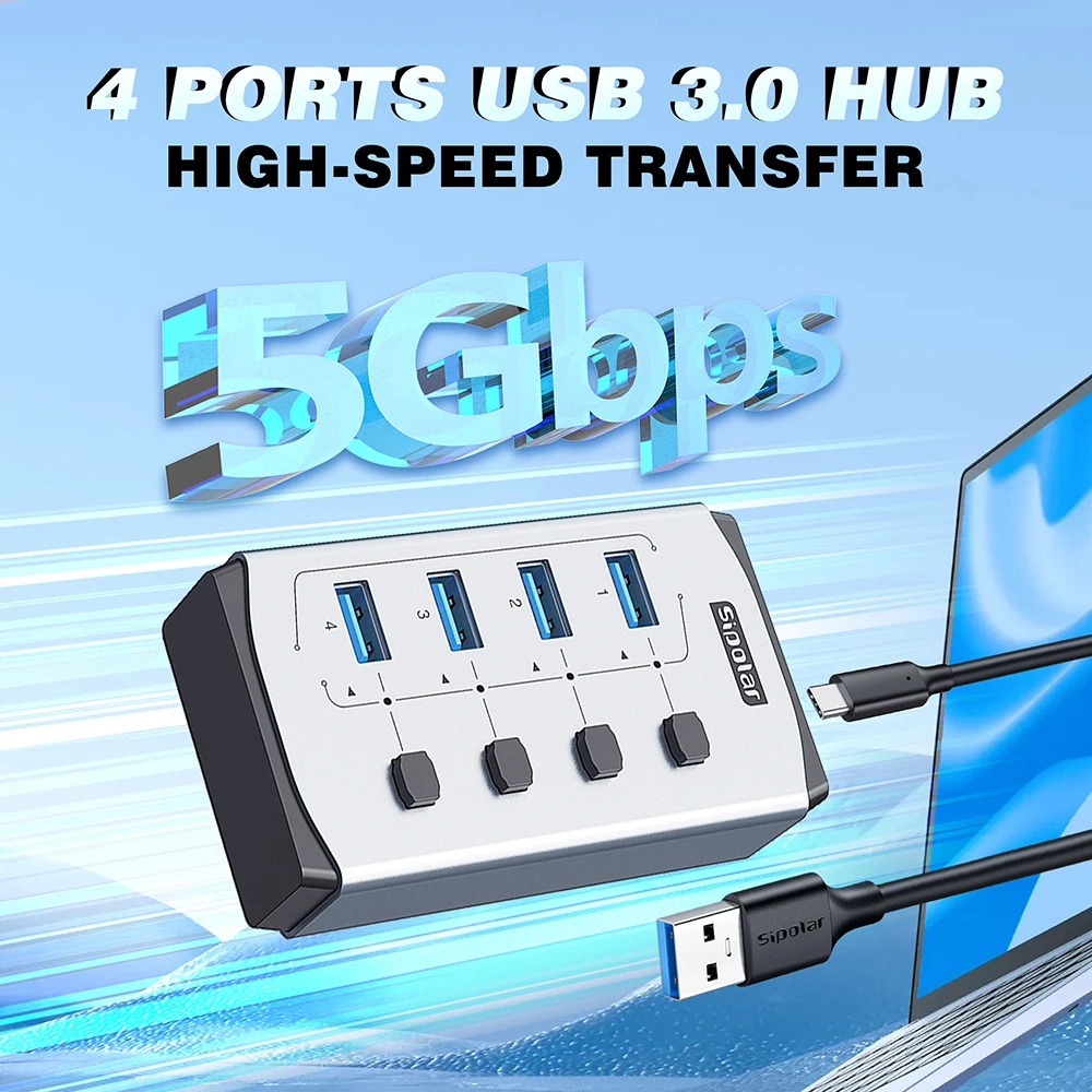 Hub USB 3.0 HUB USB a 4 porte sottile per mouse, tastiera compatibile con MacBook Pro Air Laptop PC desktop Xbox PS5 Splitter