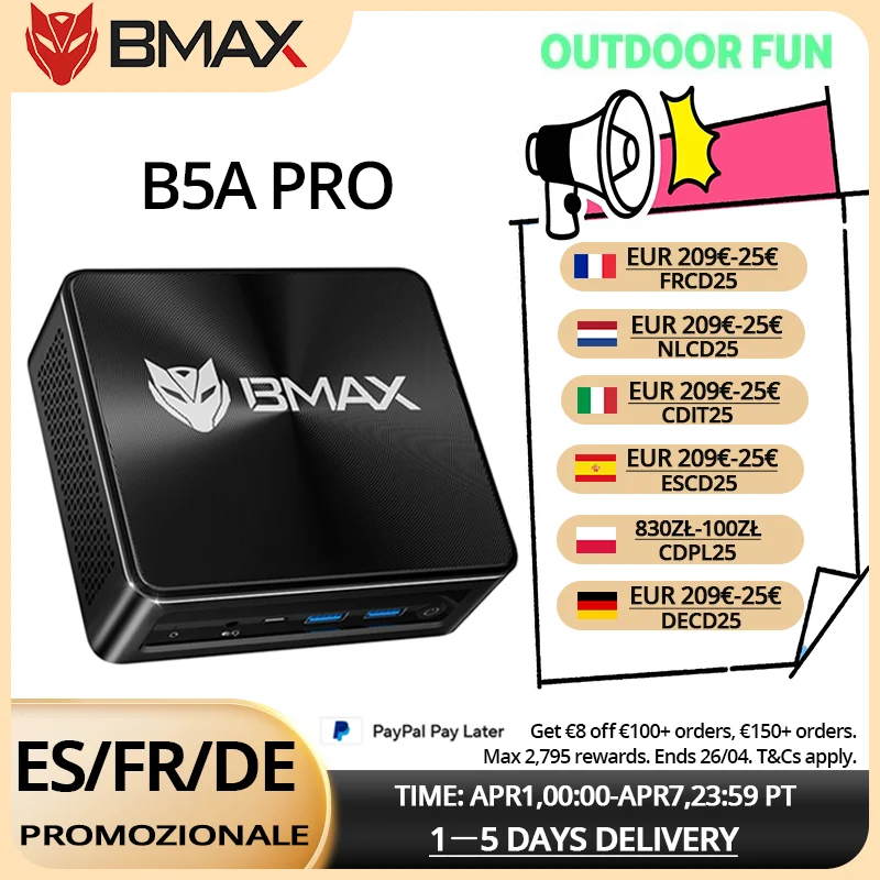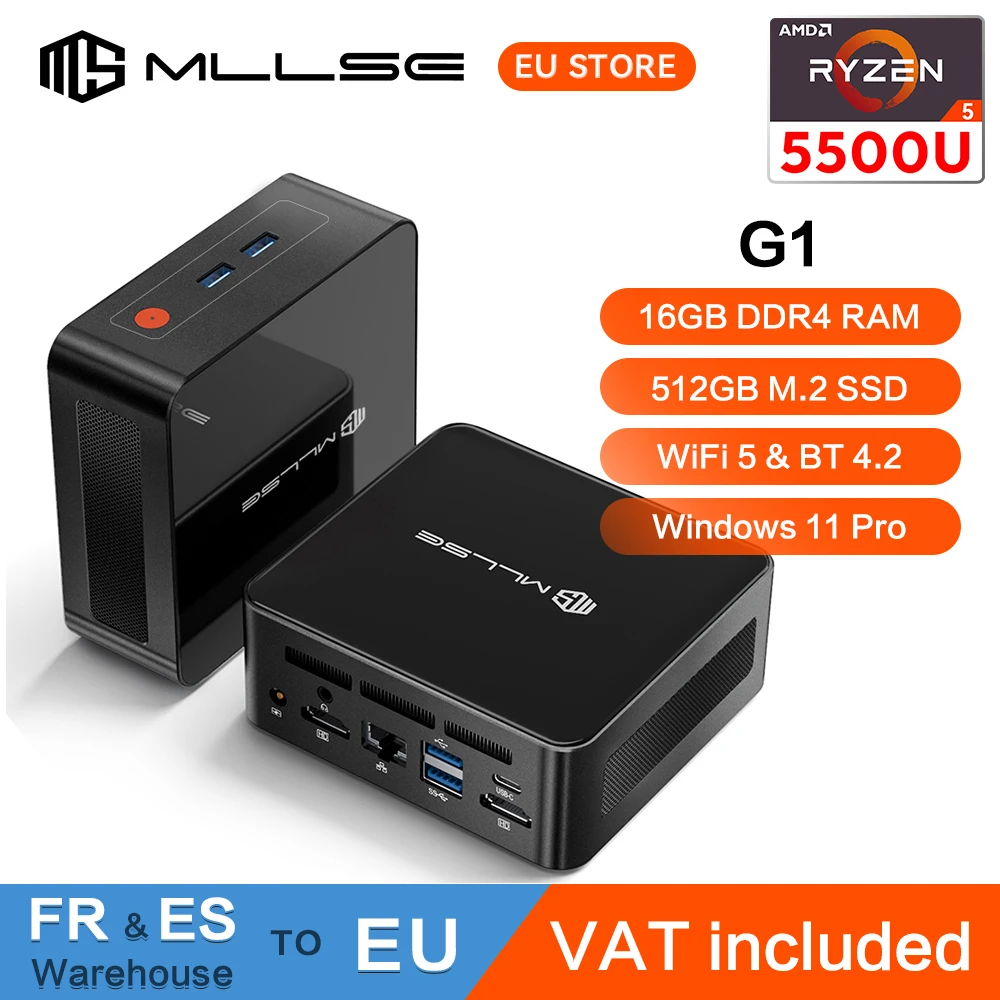 Mini PC BMAX B5A Pro con Processore AMD Ryzen7 5825U 5700U, Grafica AMD Radeon, 16GB (Supporta fino a 64GB) DDR4, SSD NVMe da 512GB, Windows 11