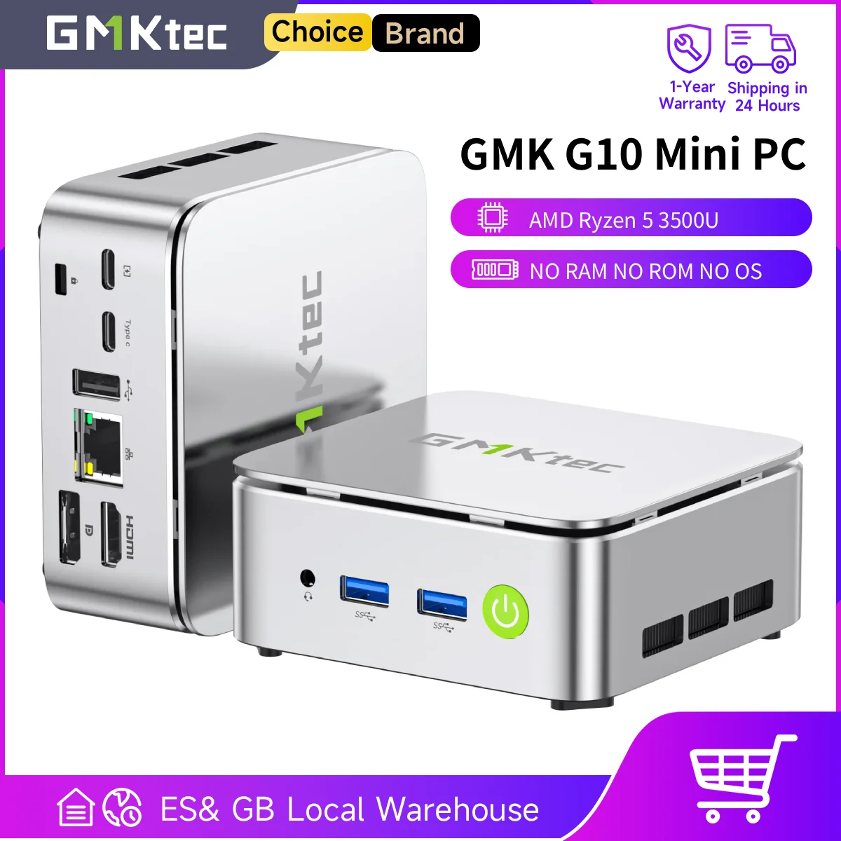 GMKtec G10 Mini PC AMD Ryzen5 3500U (Supera N150/N97) Barebone con LAN NIC 2.5GbE, HTPC Proxmox, Mini Computer, Triplo Display 4K, WiFi 5