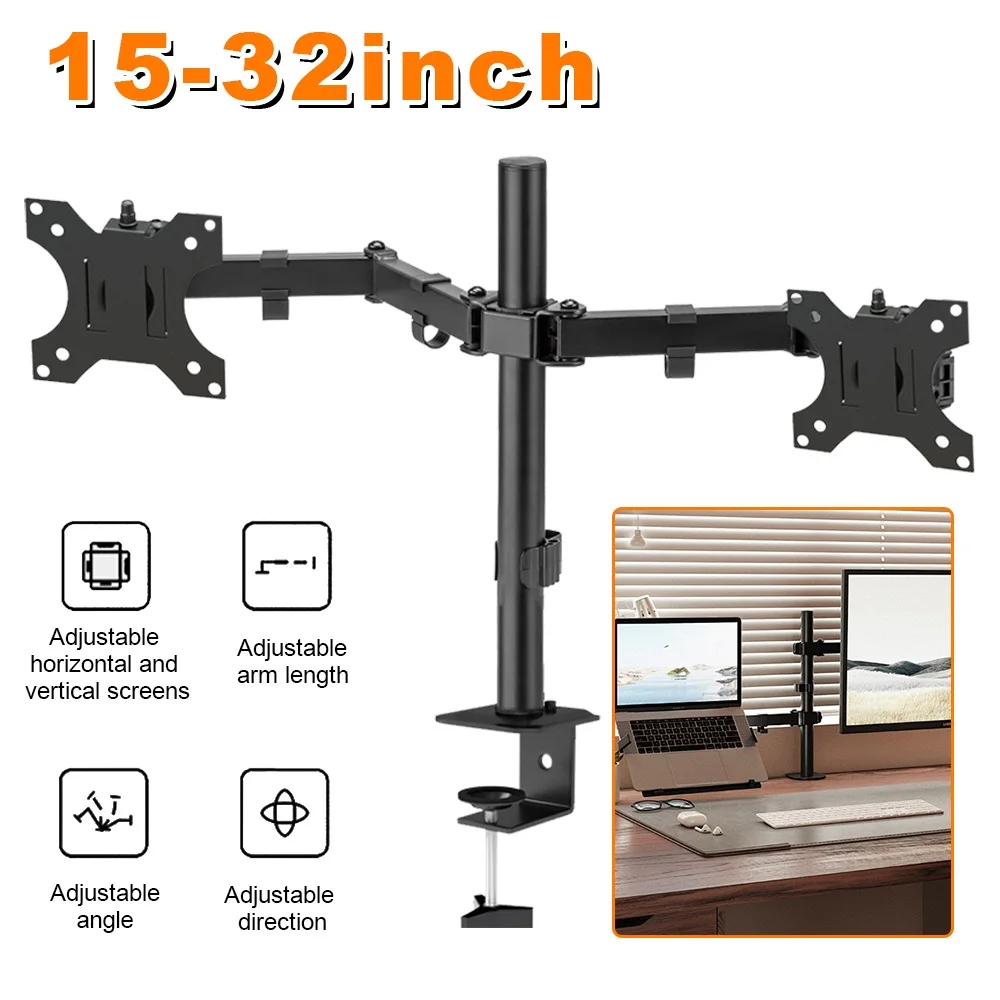 Supporto per Doppio Monitor 10-27 Pollici, Montaggio a Scrivania a 2 Bracci Completamente Articolato, Compatibile VESA, Altezza Regolabile, Inclinabile e Girevole, Design Ergonomico