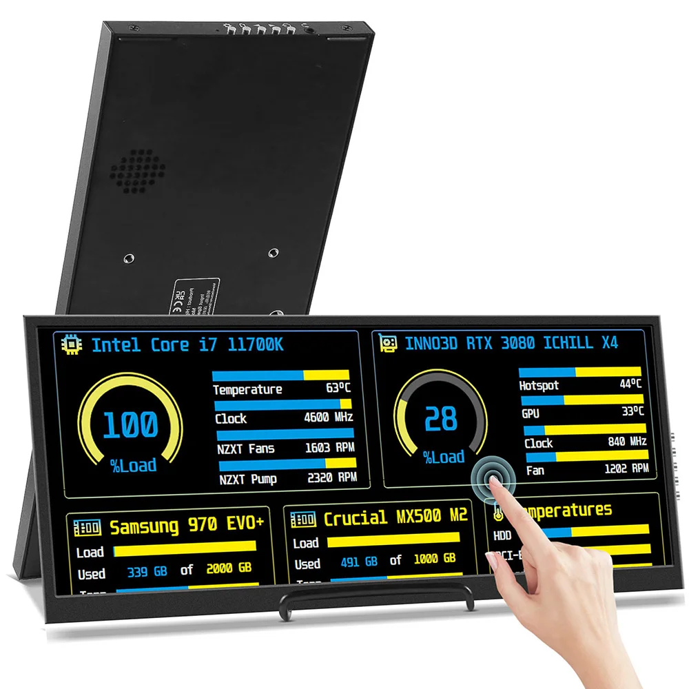 Mini monitor portatile da 11,3 pollici Schermo lungo IPS Compatibile con VESA Mini HDMI USBC Custodia per schermo a strisce di piccole dimensioni Schermo incorporato