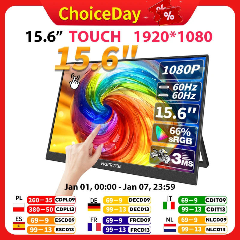 HGFRTEE Monitor portatile Touch da 15.6 pollici ADS-IPS 1920*1080P 300cd/m2 Display esteso per Laptop secondo schermo XBox PS4/ 5