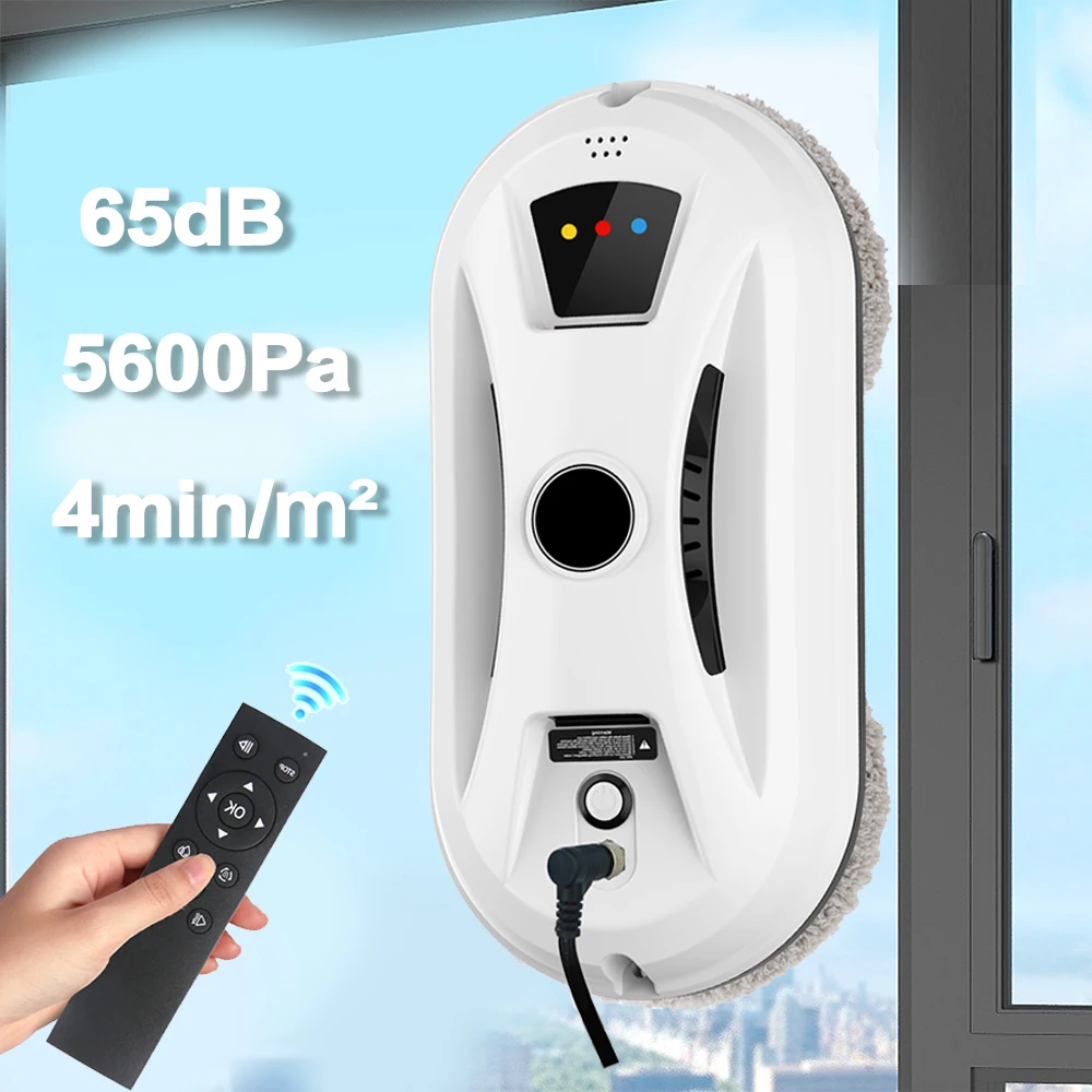 Robot Intelligente per la Pulizia dei Vetri, Aspirapolvere Automatico con 5600Pa di Aspirazione, 3 Modalità, Telecomando, per Finestre in Altezza