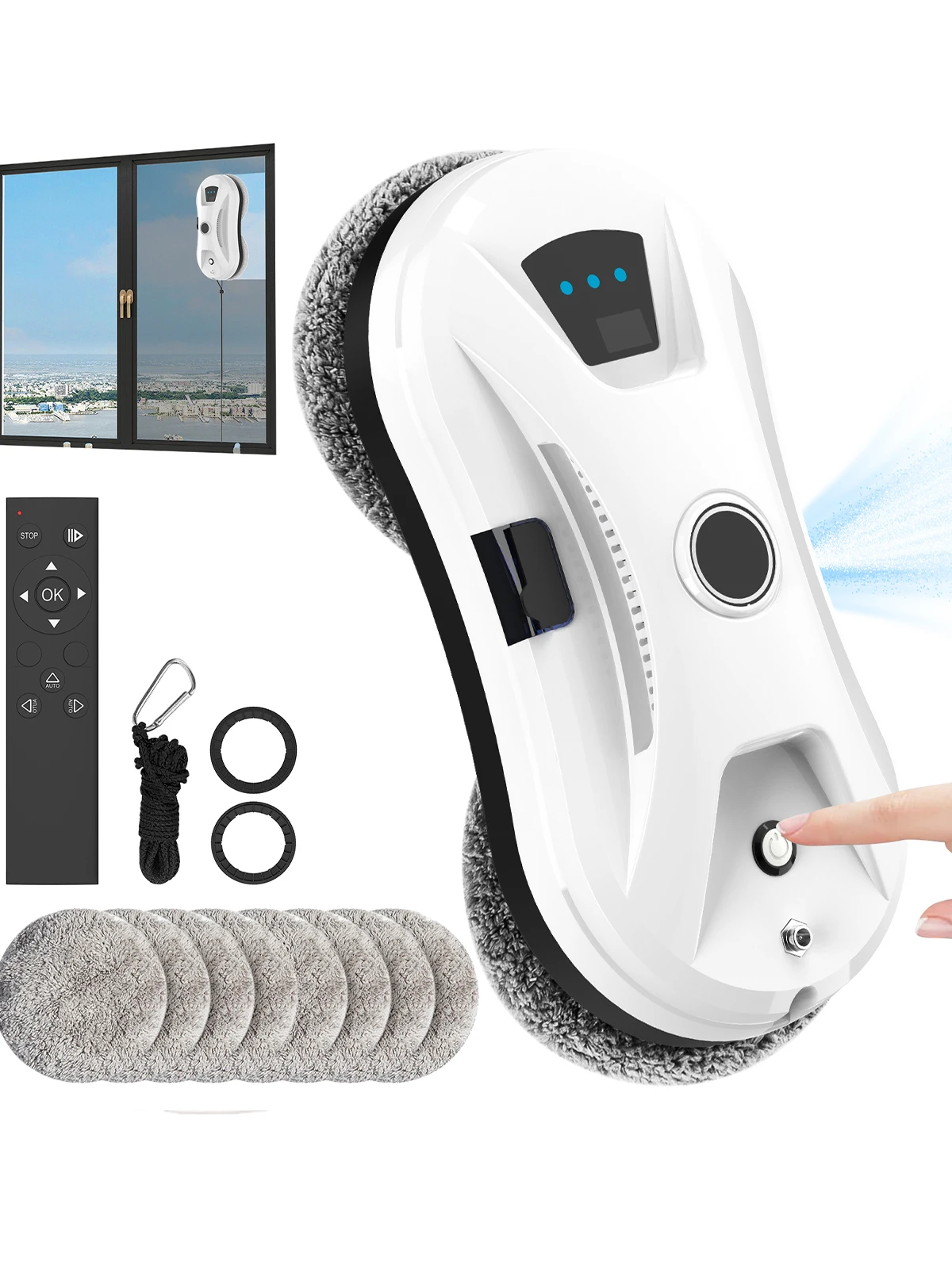 Robot per la Pulizia dei Vetri Ultra-sottile, Robot di Pulizia Automatico con Spray, Aspirapolvere Elettrico Intelligente Anti-caduta con Telecomando