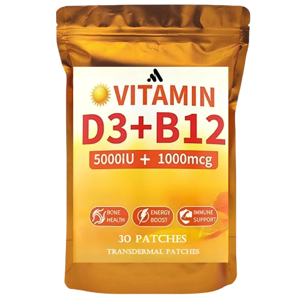 Cerotti Transdermici di Vitamina D3 e Vitamina B12 per Energia Naturale, Umore, Metabolismo e Concentrazione - 30 Cerotti