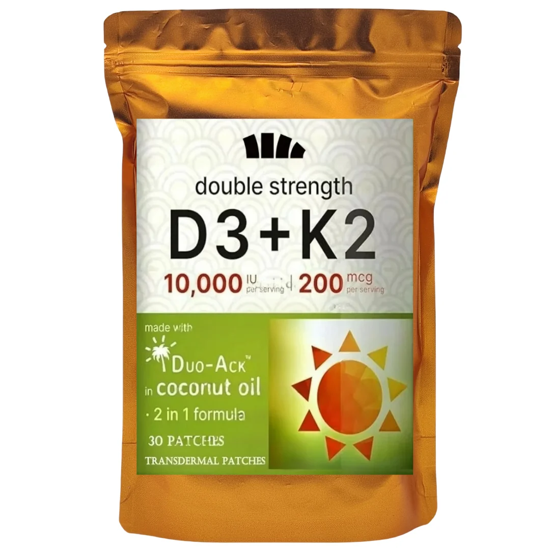 Cerotti Transdermici di Vitamina D3 e K2 per Ossa e Muscoli Forti, Assorbimento del Calcio e Salute Immunitaria, 30 Cerotti