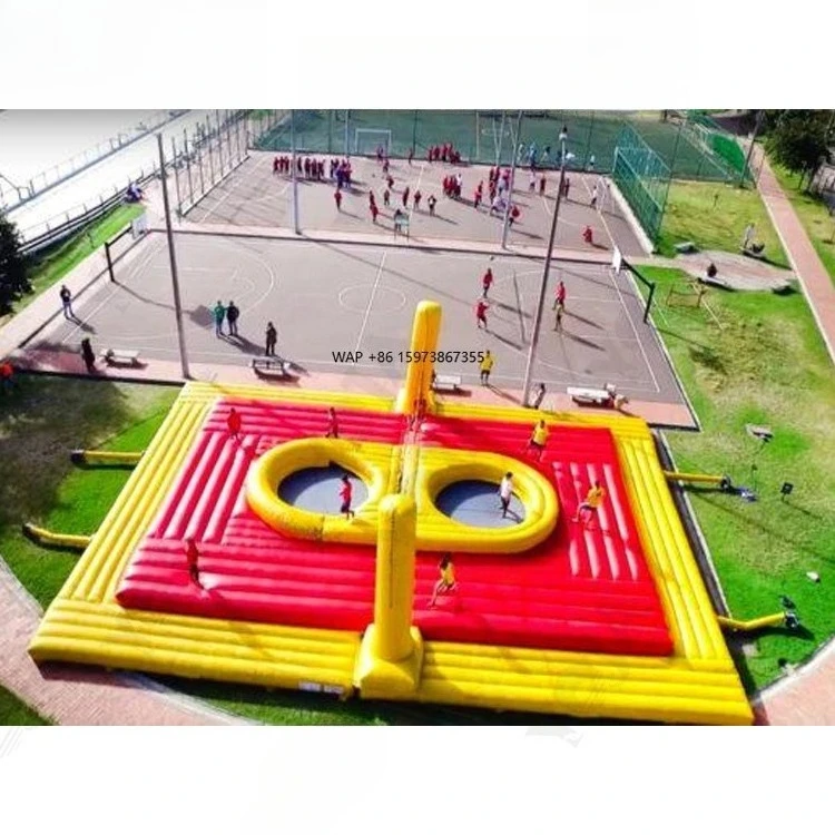 Gioco sportivo gonfiabile Bossaball in PVC personalizzato per esterni con soffiatore, campo da pallavolo a prezzo di fabbrica per saltare sulla spiaggia