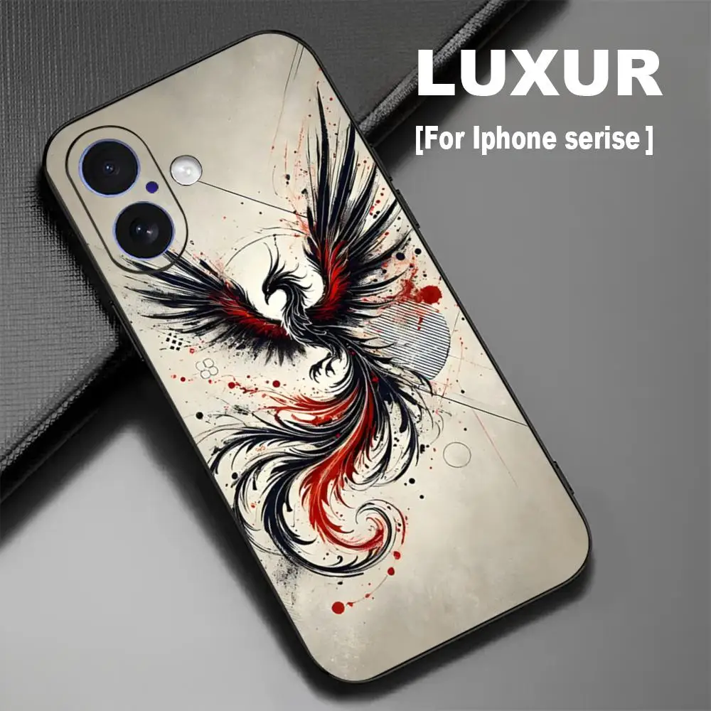 Cool Phoenix Art Custodia per telefono popolare per iPhone 17 16 15 14 13 12 X XR XS 8 Plus Mini Pro Max Custodia morbida antiurto nera