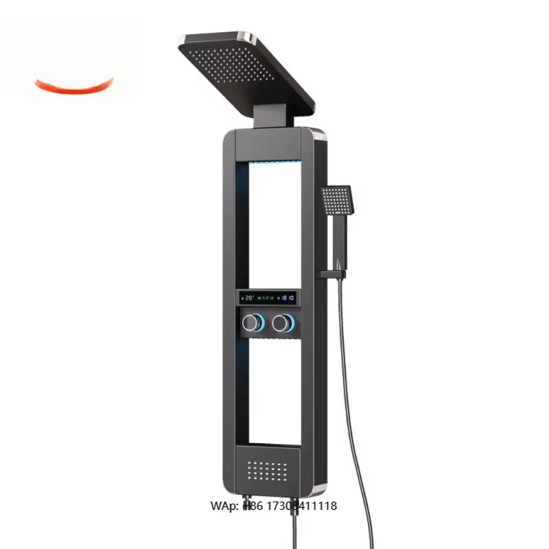 Set doccia termostatico digitale nero intelligente Rubinetto in ottone TikTok Trend Multifunzione a pioggia Jet Bagno caldo freddo a pioggia