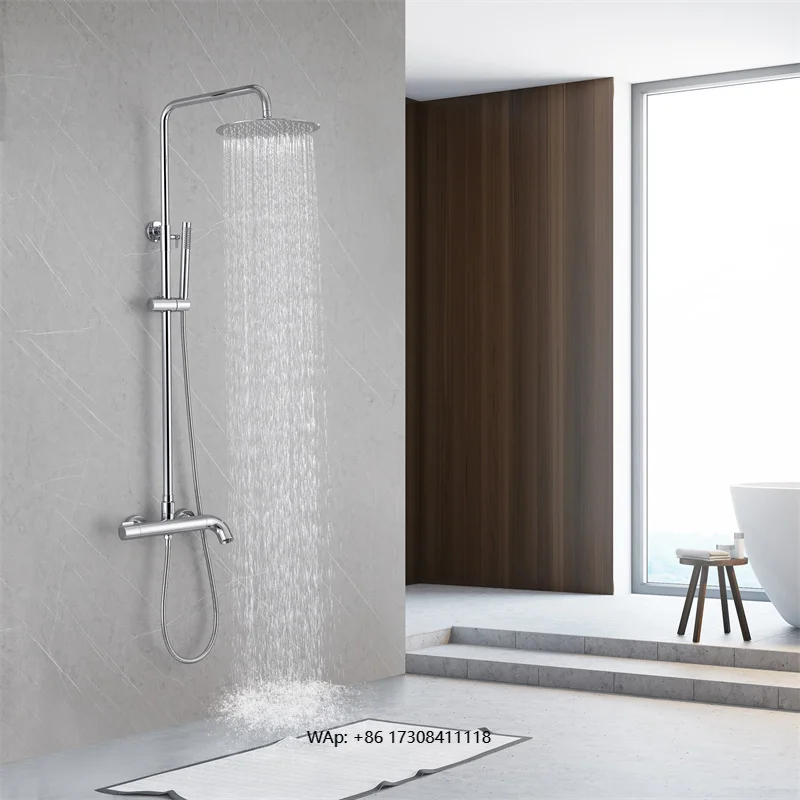 Rubinetto per doccia termostatico cromato contemporaneo di alta qualità, sistema doccia per bagno, doccia a parete con colonna