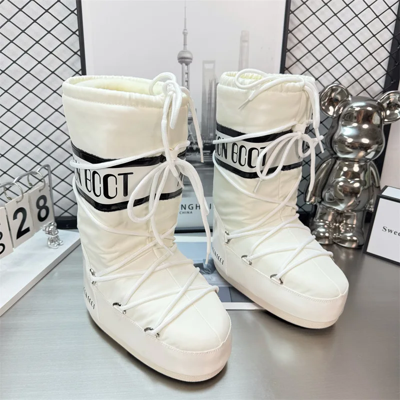 Stivali da neve impermeabili con cielo stellato e luna da donna, nuovo stile invernale 20225, stivali da sci caldi antiscivolo con lacci al ginocchio medio-alto