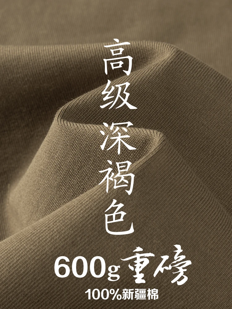 T-shirt a maniche corte in cotone pesante 600G marrone scuro premium per uomo e donna, t-shirt casual ampia estiva