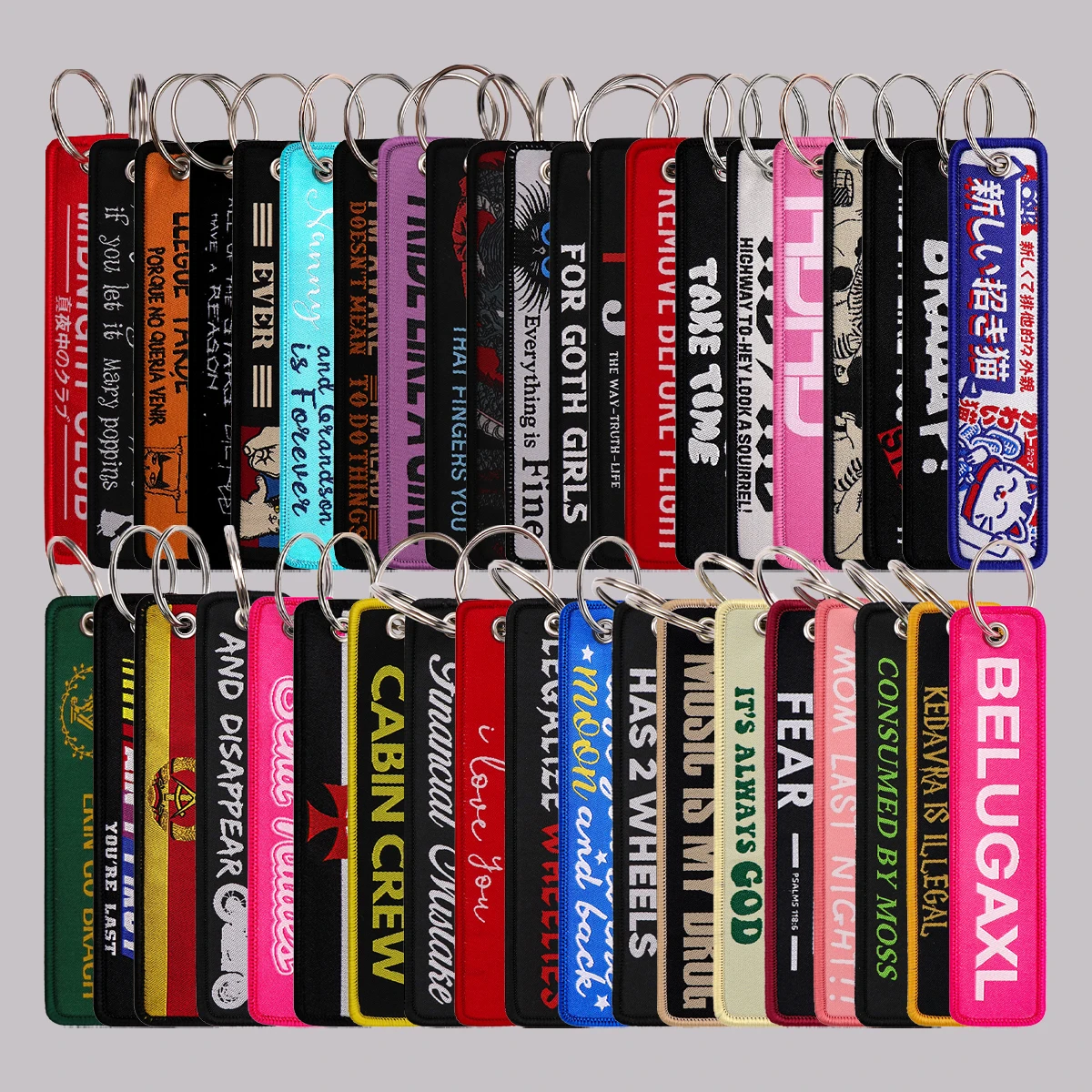 Citazioni divertenti Serise Ricamo Portachiavi Portachiavi per motocicli Portachiavi per auto Portachiavi Portachiavi Portachiavi Accessori per gioielli Chaveiro Regali